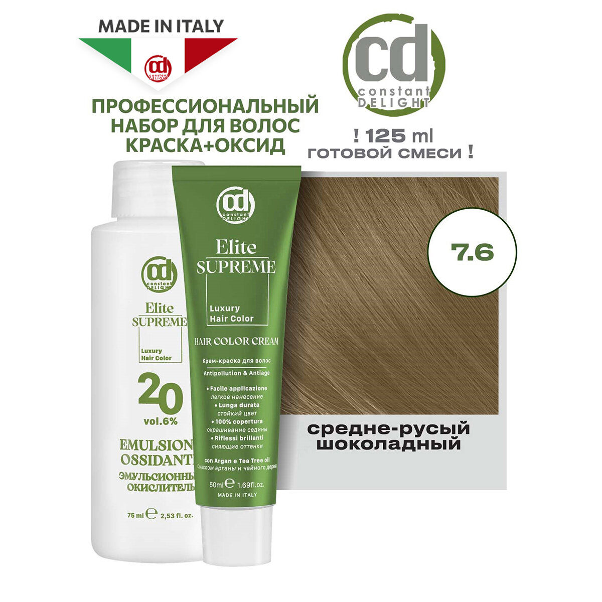 Краска ELITE SUPREME для окрашивания волос CONSTANT DELIGHT 7.6 средне-русый шоколадный 50+75 мл информация: