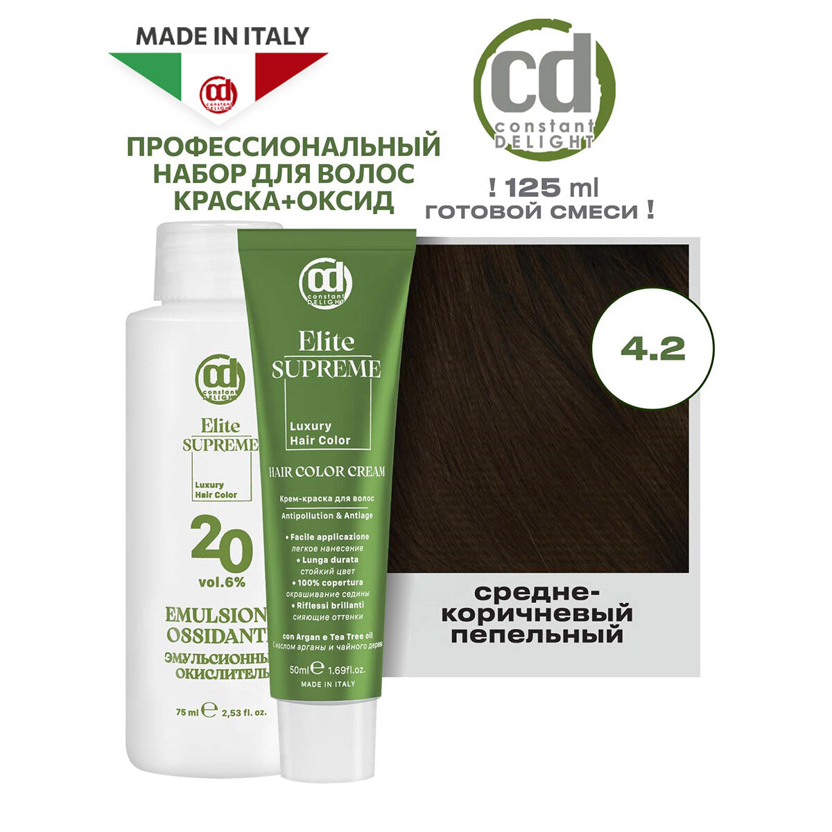 Краска ELITE SUPREME для окрашивания волос CONSTANT DELIGHT 4.2 средне-коричневый пепельный 50+75 мл информация: