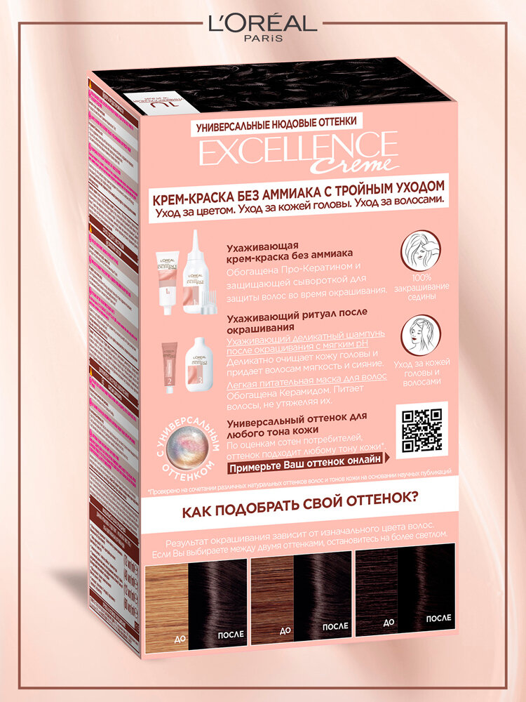 Крем-краска с тройным уходом, L'oreal Paris Excellence, 3U универсальный темно-каштановый. 1 300 ₽