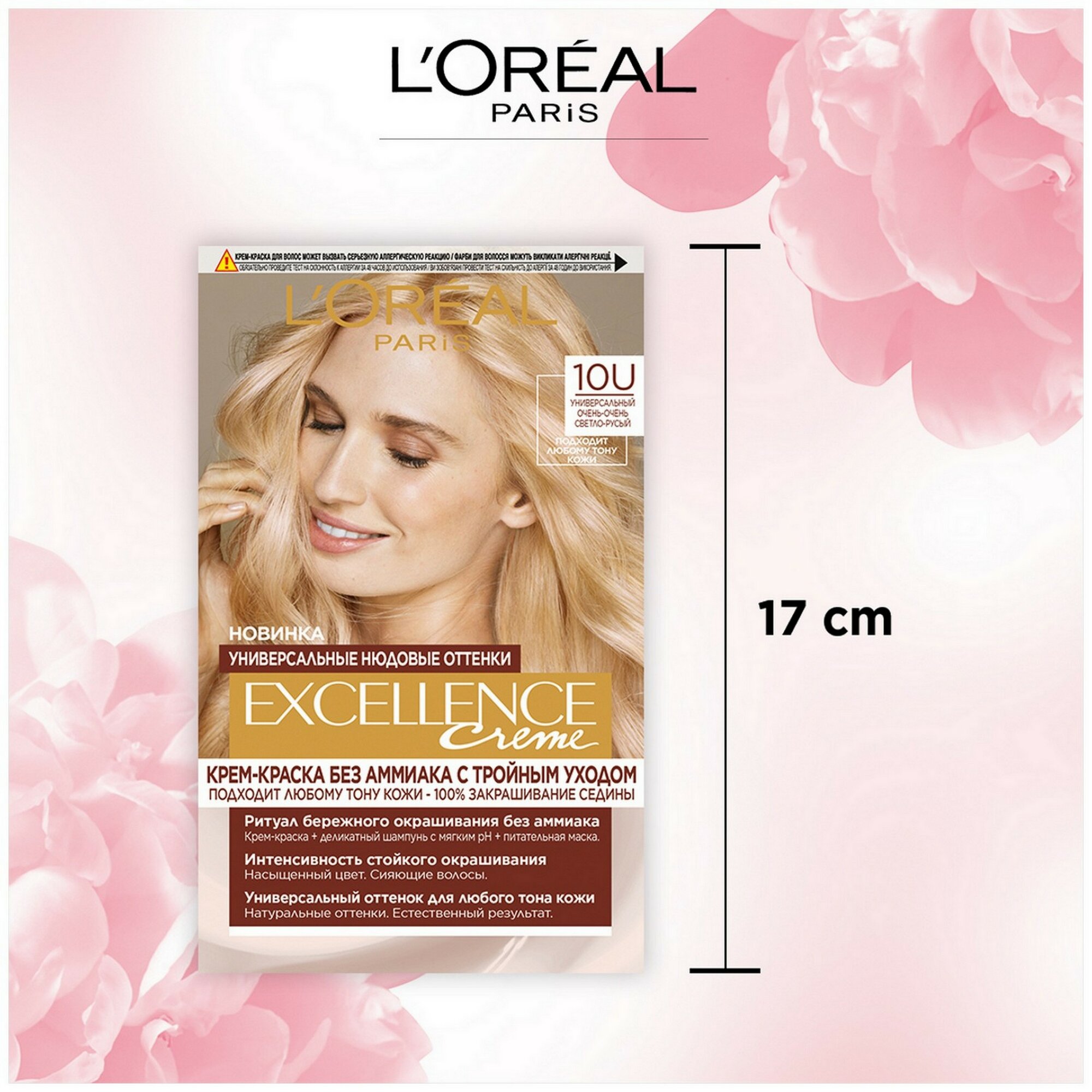 L'Oreal Paris крем-краска для волос без аммиака "Excellence Crème Универсальные Нюдовые Оттенки", оттенок 10U, универсальный очень-очень светло-русый