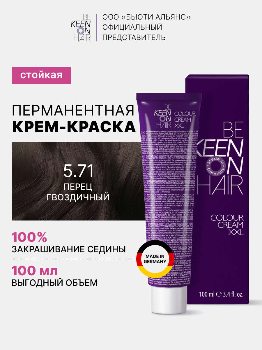KEEN Крем-краска для волос XXL 5.71 Перец гвоздичный / Piment, Профессиональная краска KEEN COLOUR CREAM, 100мл 880 ₽