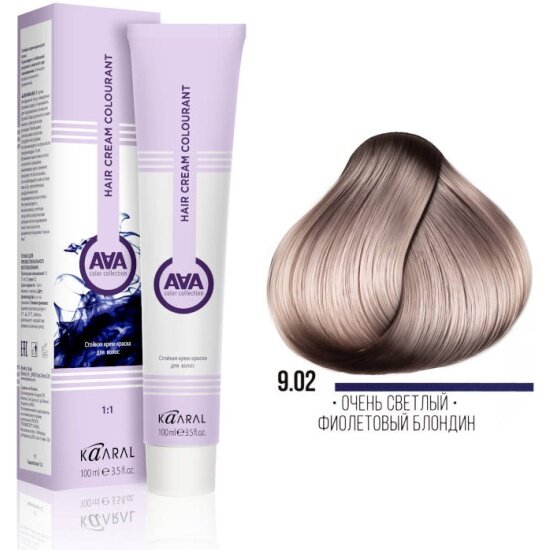 Kaaral AAA стойкая крем-краска для волос, 9.02 очень светлый фиолетовый блондин, 100 мл информация: