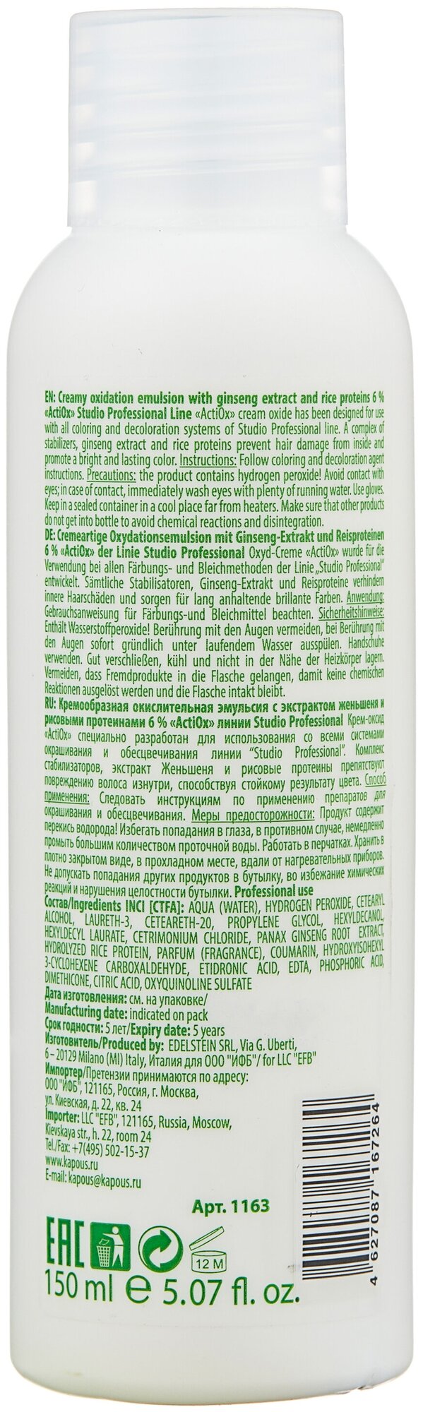Kapous Кремообразная окислительная эмульсия с экстрактом женьшеня и рисовыми протеинами Studio Professional ActiOx 6 %, 150 мл, 150 г информация: