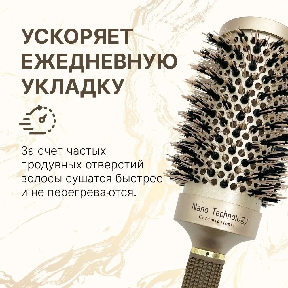 Отзывы на Круглая расческа брашинг для укладки волос премиум с керамическим покрытием и натуральной щетиной, термобрашинг Ceramic + Ion, 53 мм