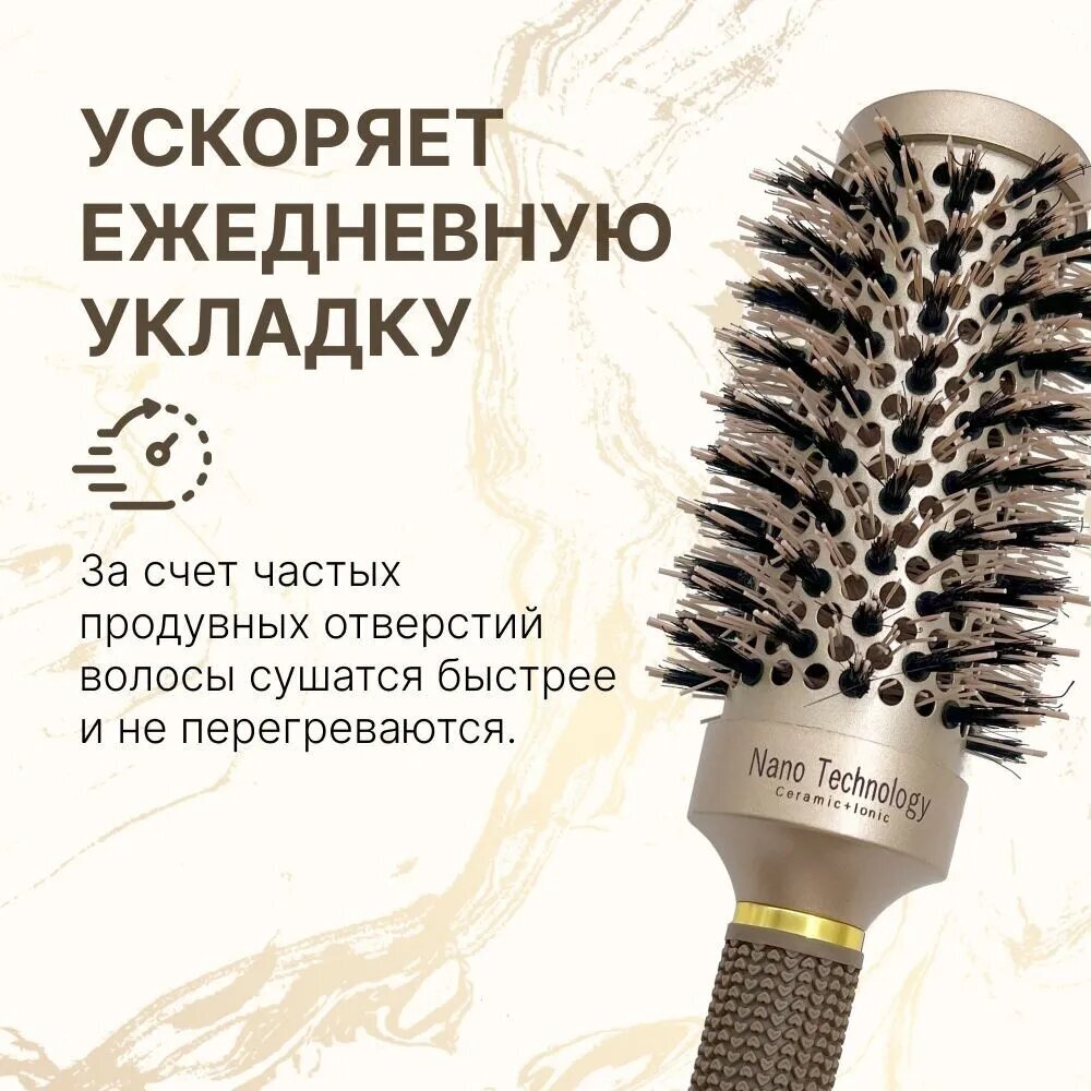 Отзывы на Круглая расческа брашинг для укладки волос премиум с керамическим покрытием и натуральной щетиной, термобрашинг Ceramic + Ion, 45 мм