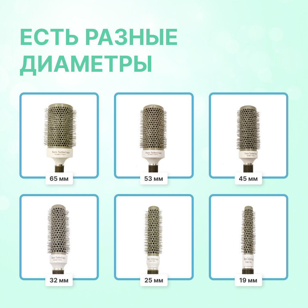 10 цен на Круглая расческа брашинг для укладки волос с керамическим покрытием, термобрашинг Ceramic + Ion, прорезиненная ручка, 25 мм