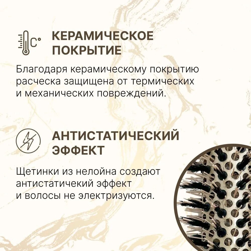 Отзывы на Круглая расческа брашинг для укладки волос премиум с керамическим покрытием и натуральной щетиной, термобрашинг Ceramic + Ion, 25 мм