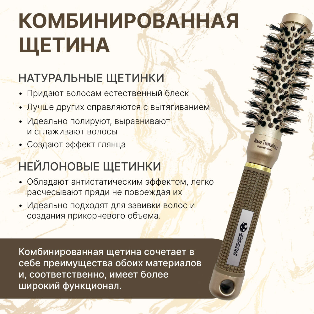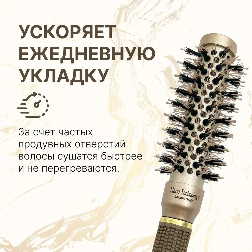 Круглая расческа брашинг для укладки волос премиум с керамическим покрытием и натуральной щетиной, термобрашинг Ceramic + Ion, 25 мм информация: