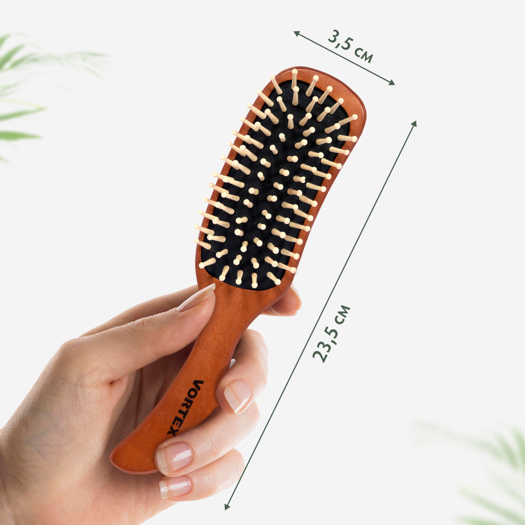 Расческа деревянная, массажная /для волос/с ручкой/для укладки 23,5х6х3,5 см, "волна", с деревянными зубчиками "VORTEX" информация:
