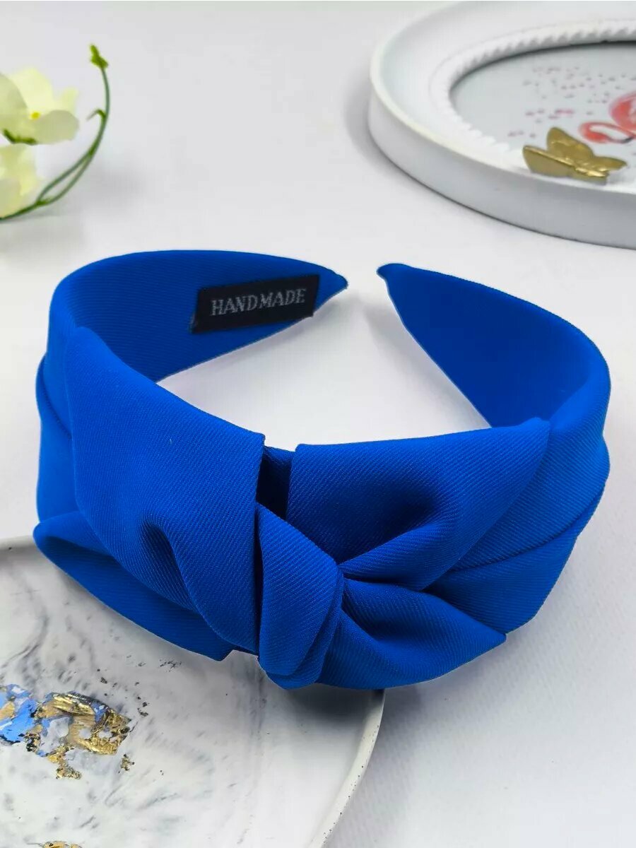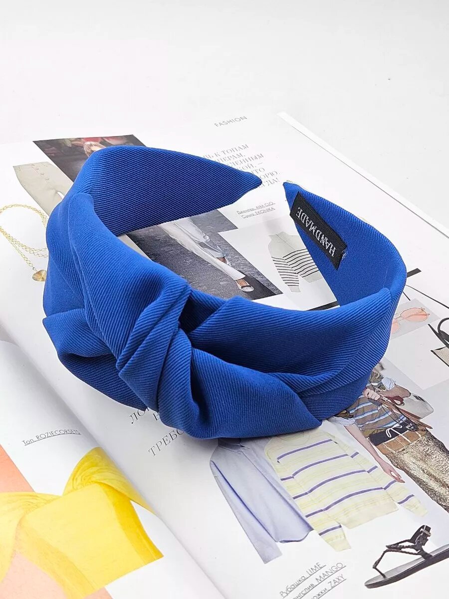 Ободок для волос женский широкий тканевый с узлом синий электрик информация: