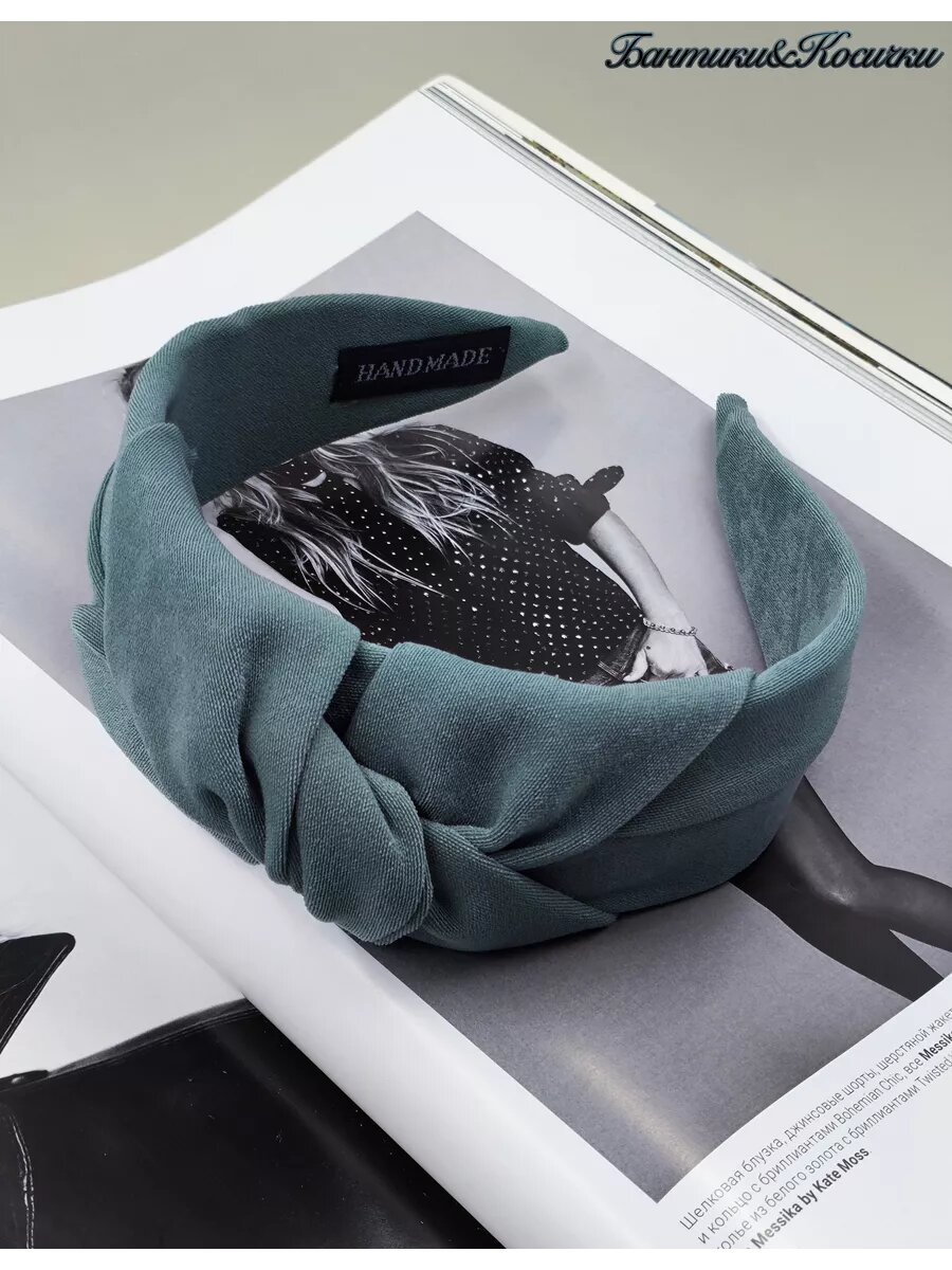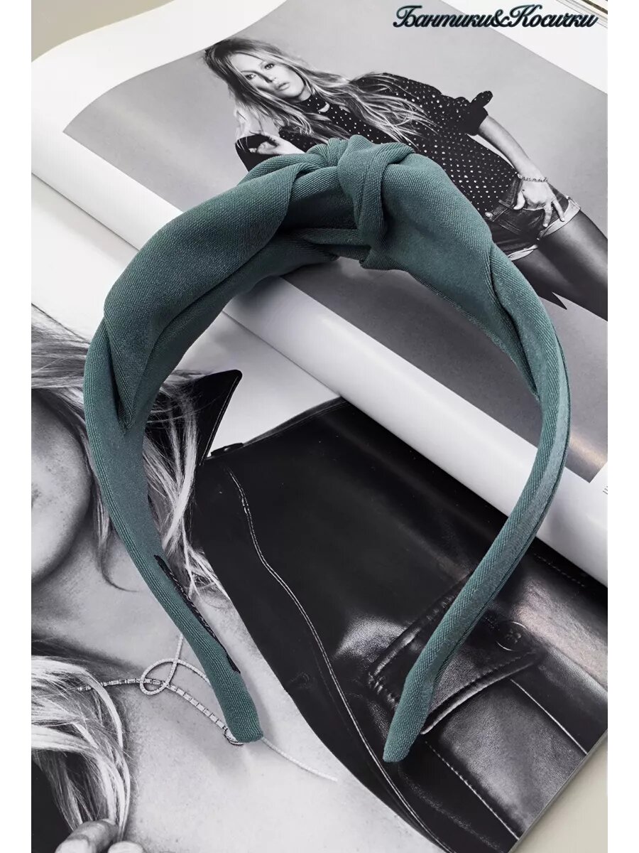 Ободок для волос женский широкий тканевый с узлом зеленый информация: