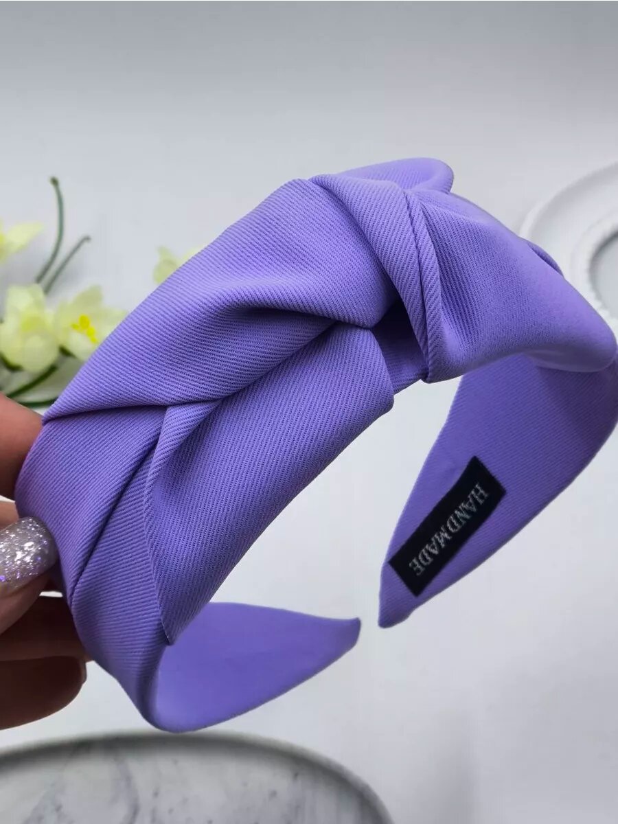 Ободок для волос женский широкий тканевый с узлом сиреневый