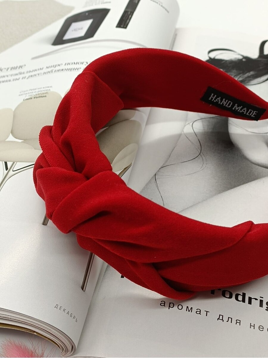 Ободок для волос женский широкий тканевый с узлом красный информация: