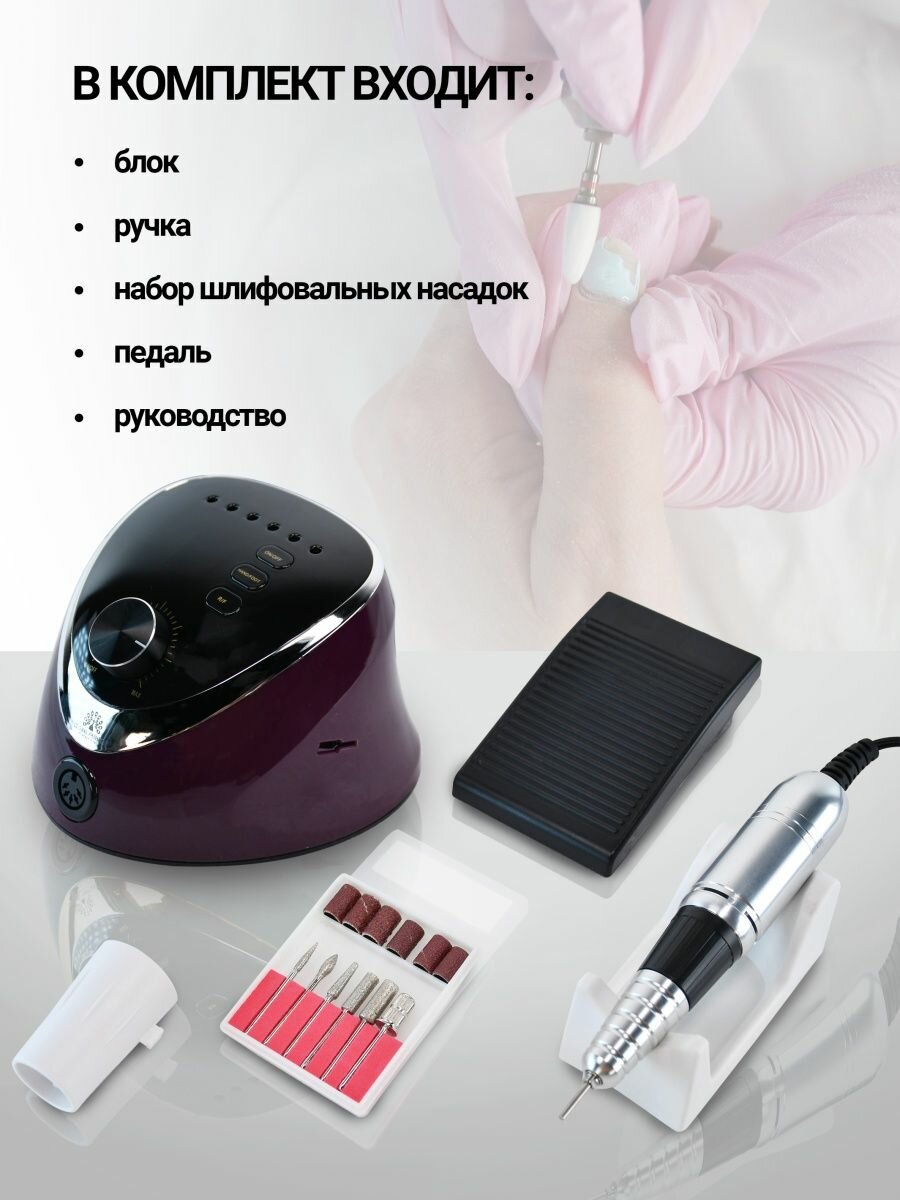 10 цен на Аппарат для маникюра и педикюра 35000 об, 68W, M12 Purple