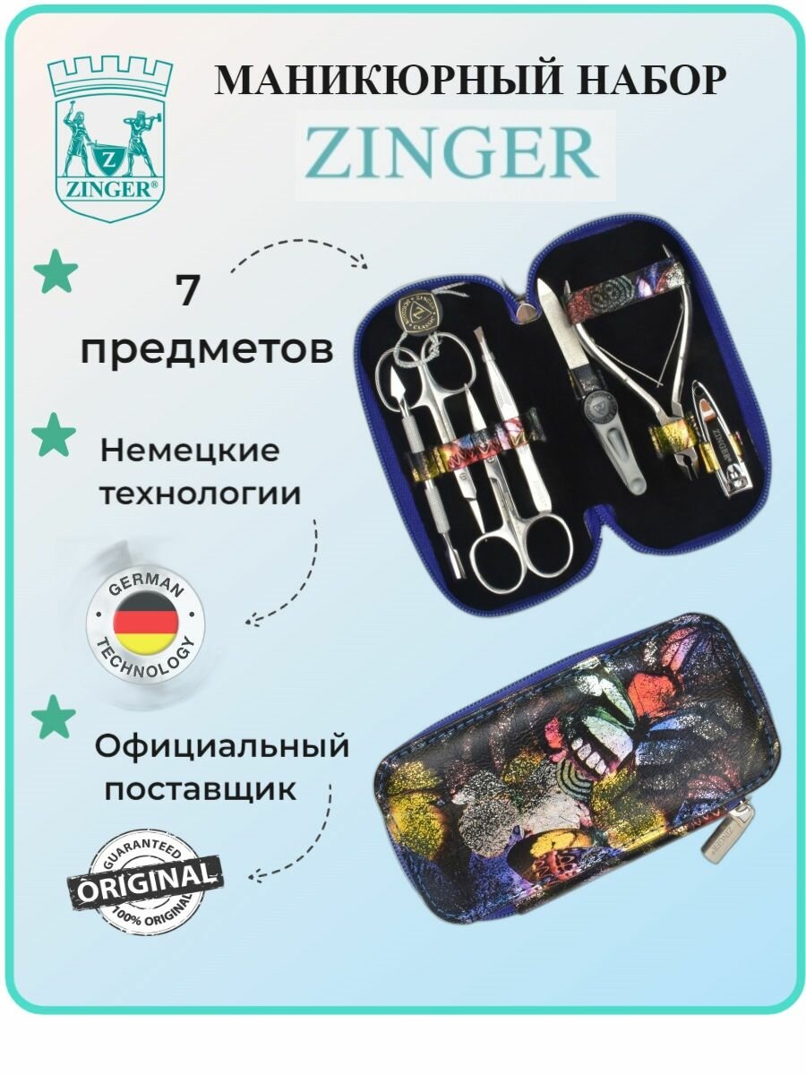 Маникюрный набор, ZINGER, MS-7105, 7 предметов, чехол синие бабочки информация: