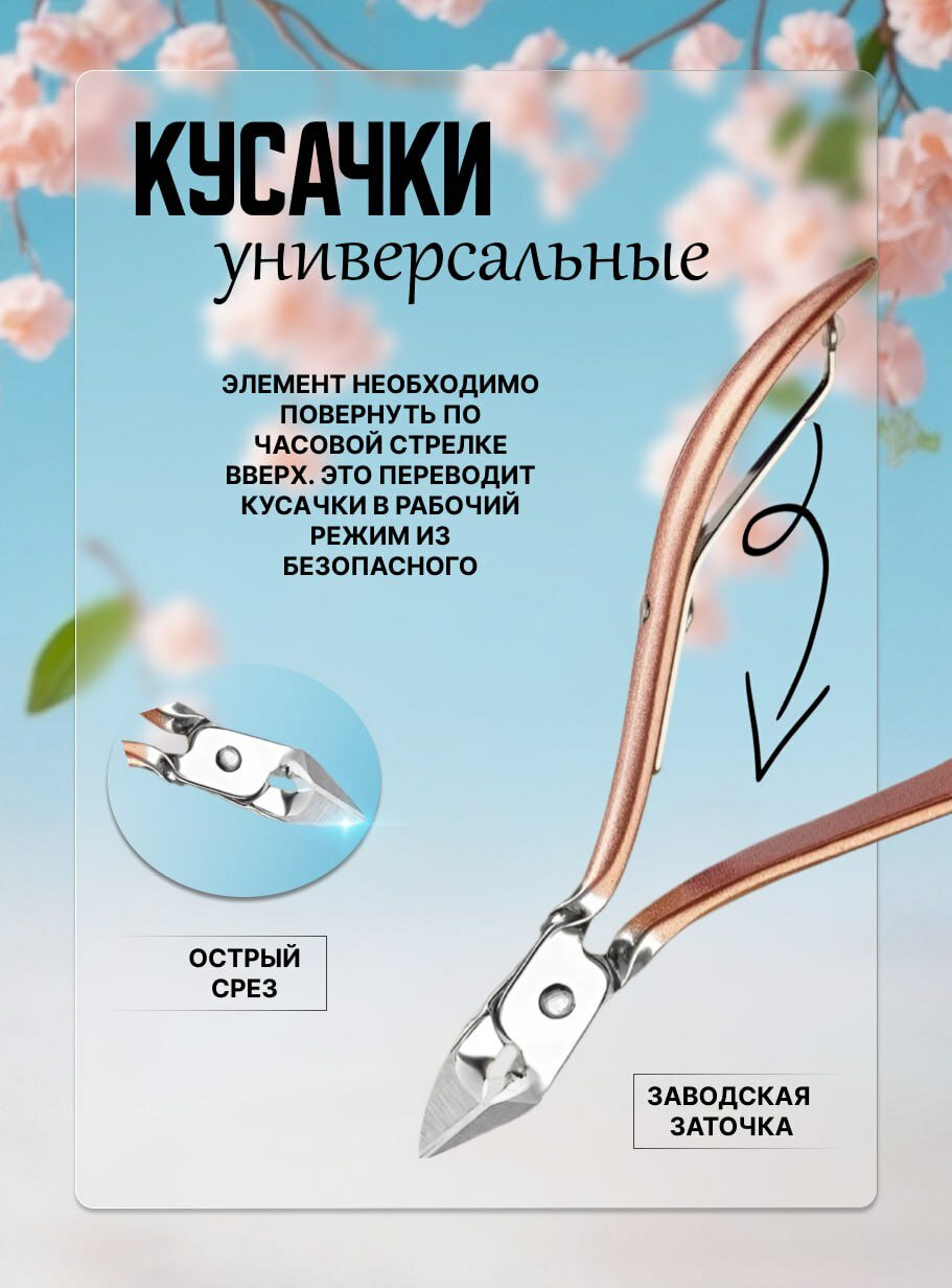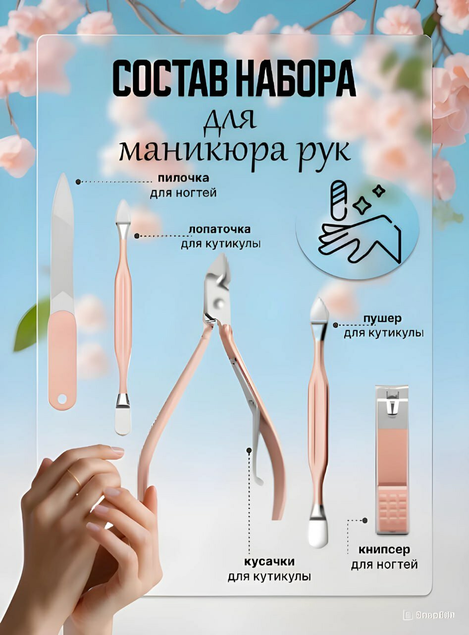 | Состав набора | книпсер, косметическая петля, кусачки, ножницы, ножницы для ногтей, ножницы для педикюра, пилка, пинцет, пушер для кутикулы, триммер |