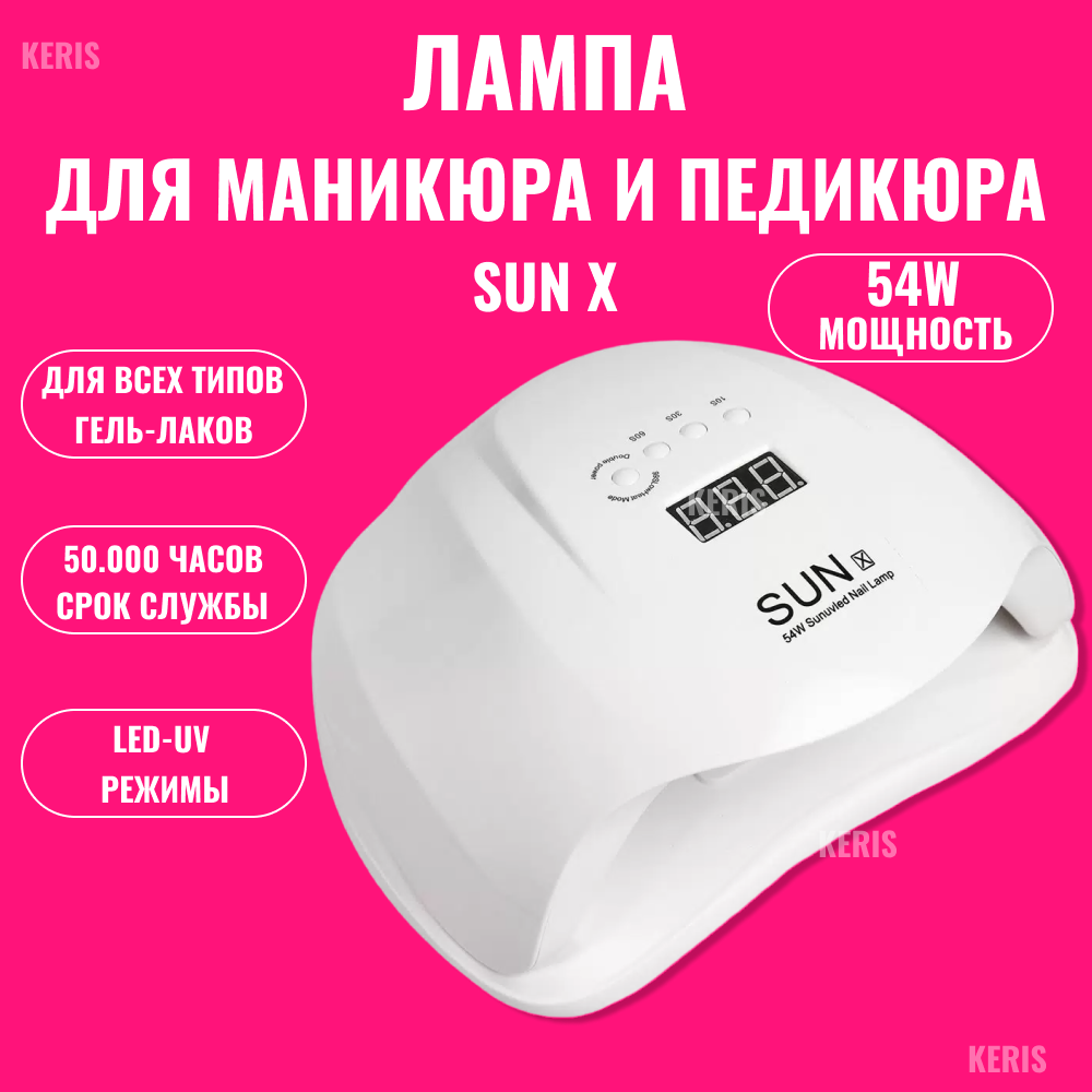Отзывы на KERIS Лампа для маникюра Sun X 54W со съёмным дном для сушки ногтей LED/UV Сан 10 54 Вт