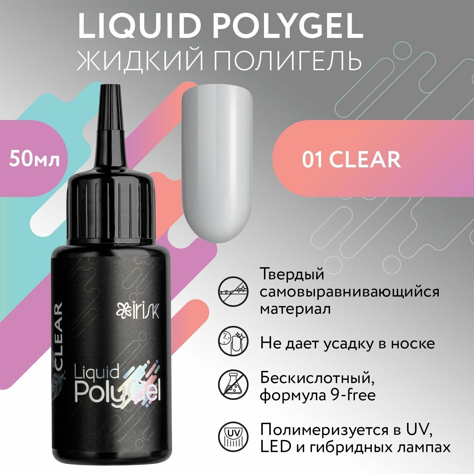 IRISK Жидкий полигель (акрил гель) для наращивания, укрепления, моделирования ногтей, Liquid PolyGel, № 01, 50 мл информация: