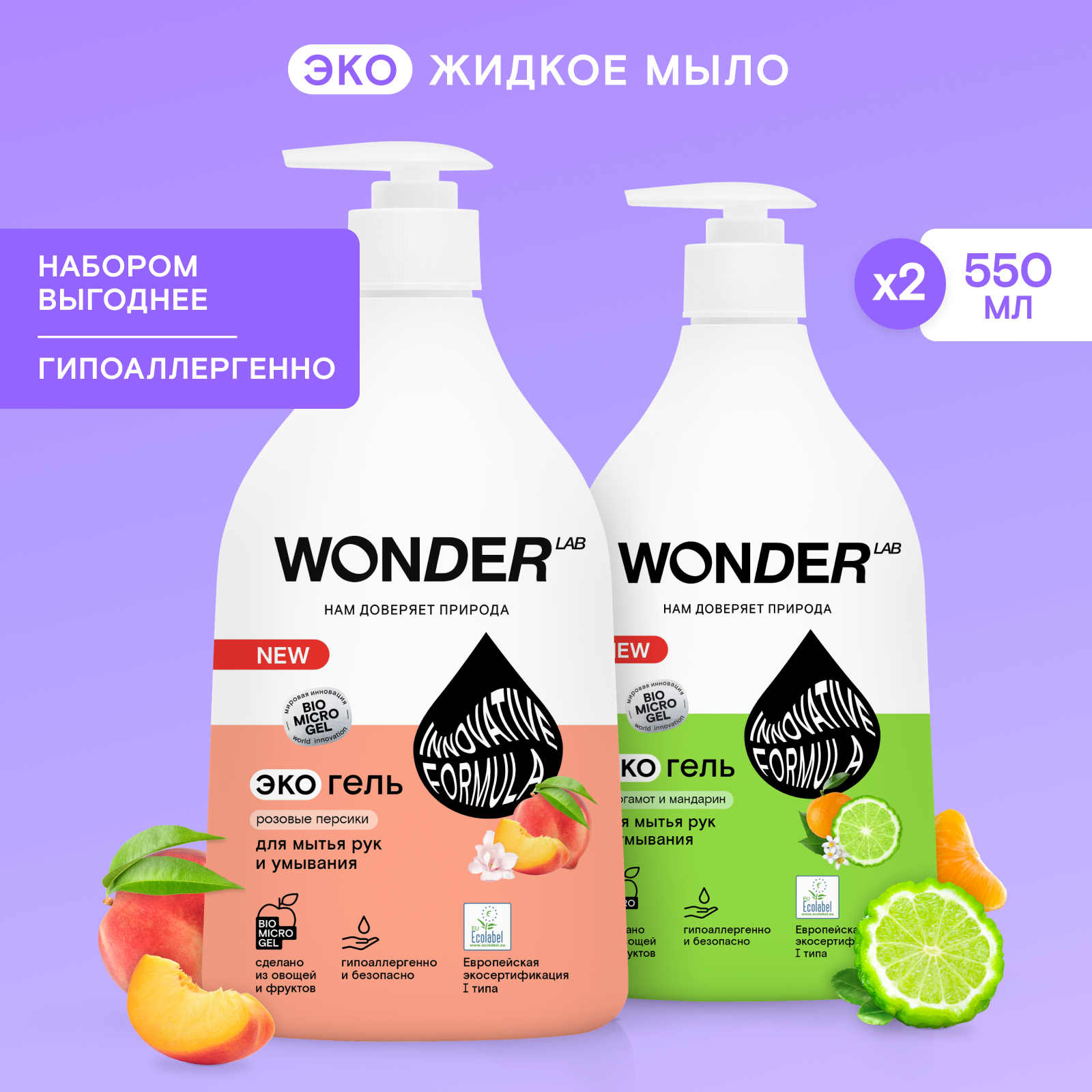WONDER LAB Экогель для мытья рук и умывания Бергамот и мандарин, 540 мл 621 ₽