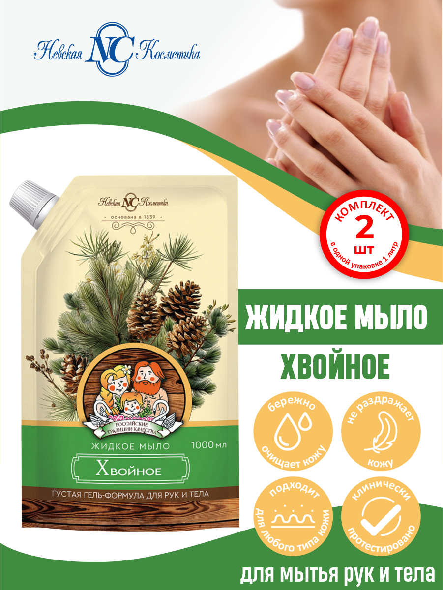 Жидкое мыло Невская Косметика Хвойное Дой Пак 1 литр х 2 шт. информация: