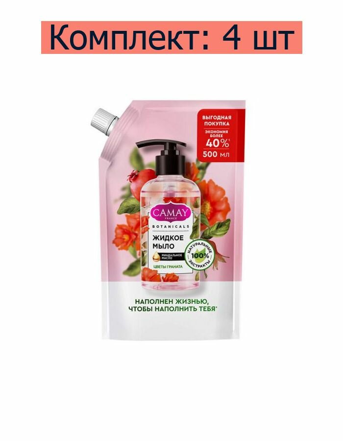 10 цен на Camay Мыло жидкое Botanicals Цветы граната, 500 мл 4 шт.