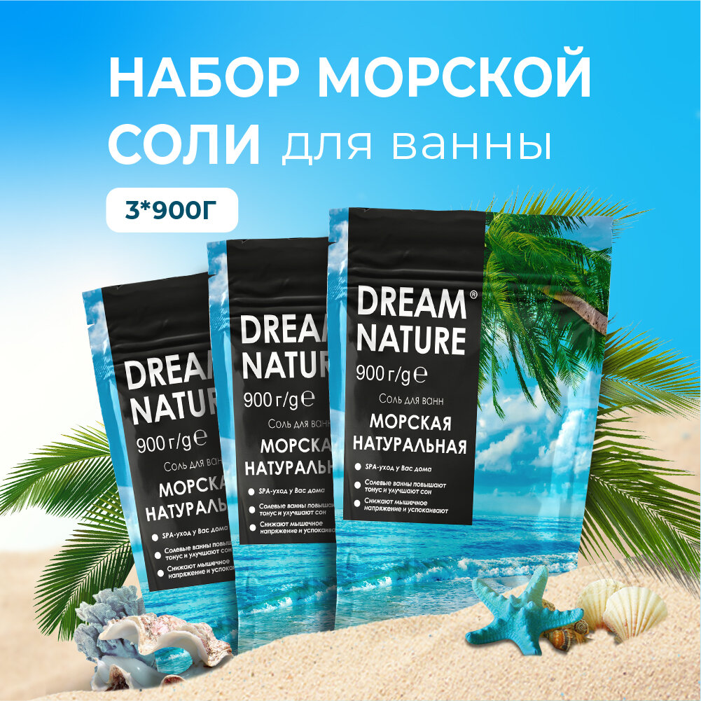 Морская соль натуральная для ванны Dream Nature 3x900 гр информация: