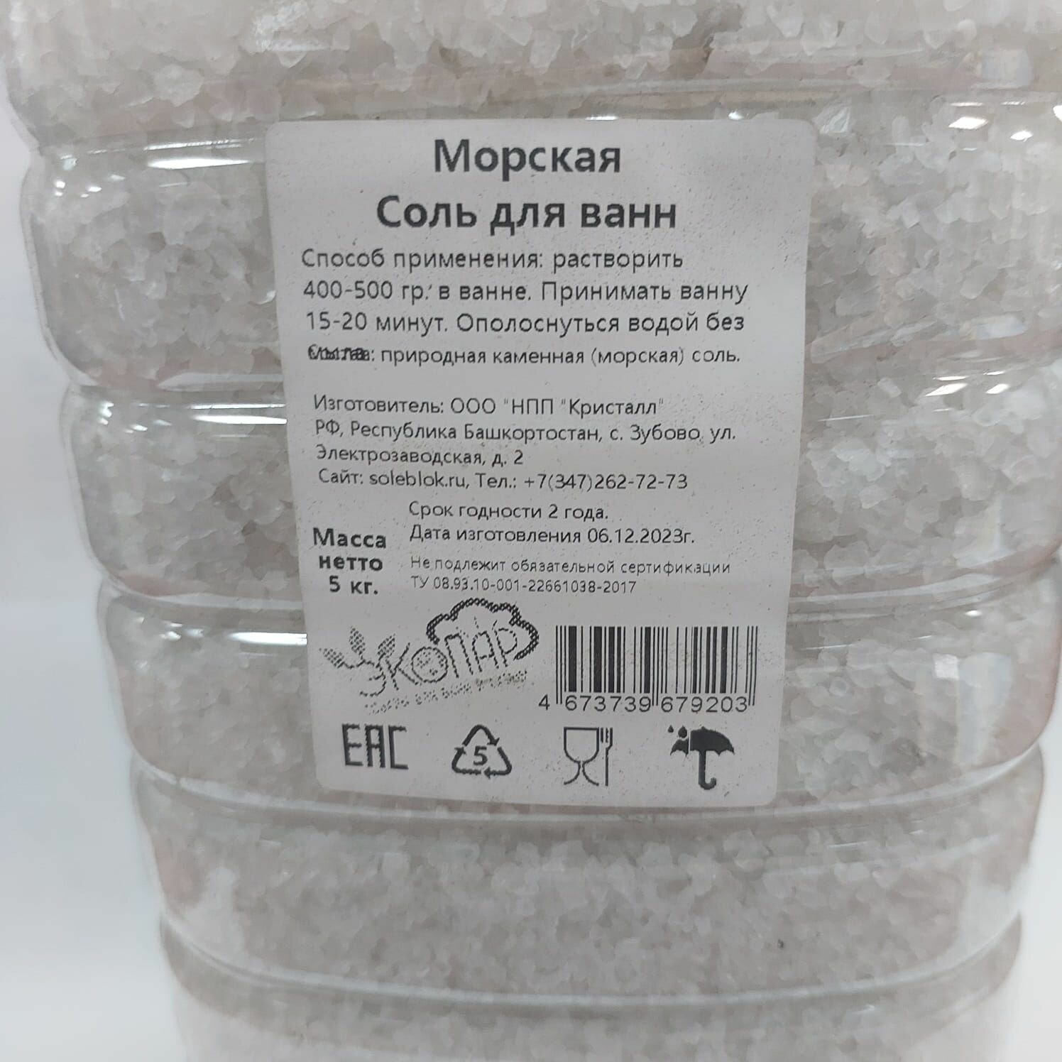 Соль для ванн "ЭкоПар" морская 5 кг информация: