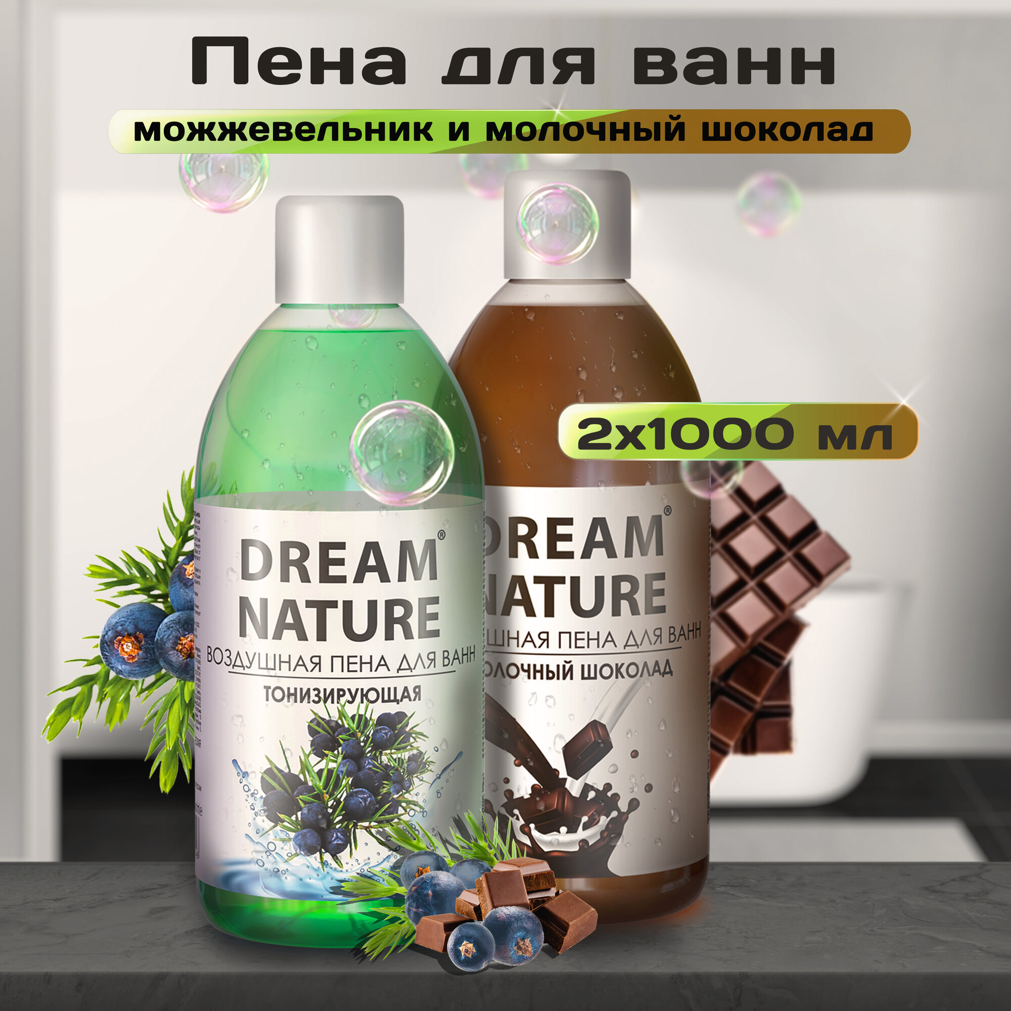 Набор пены для ванны Dream Nature Можжевельник + Молочный шоколад 2х1000мл информация: