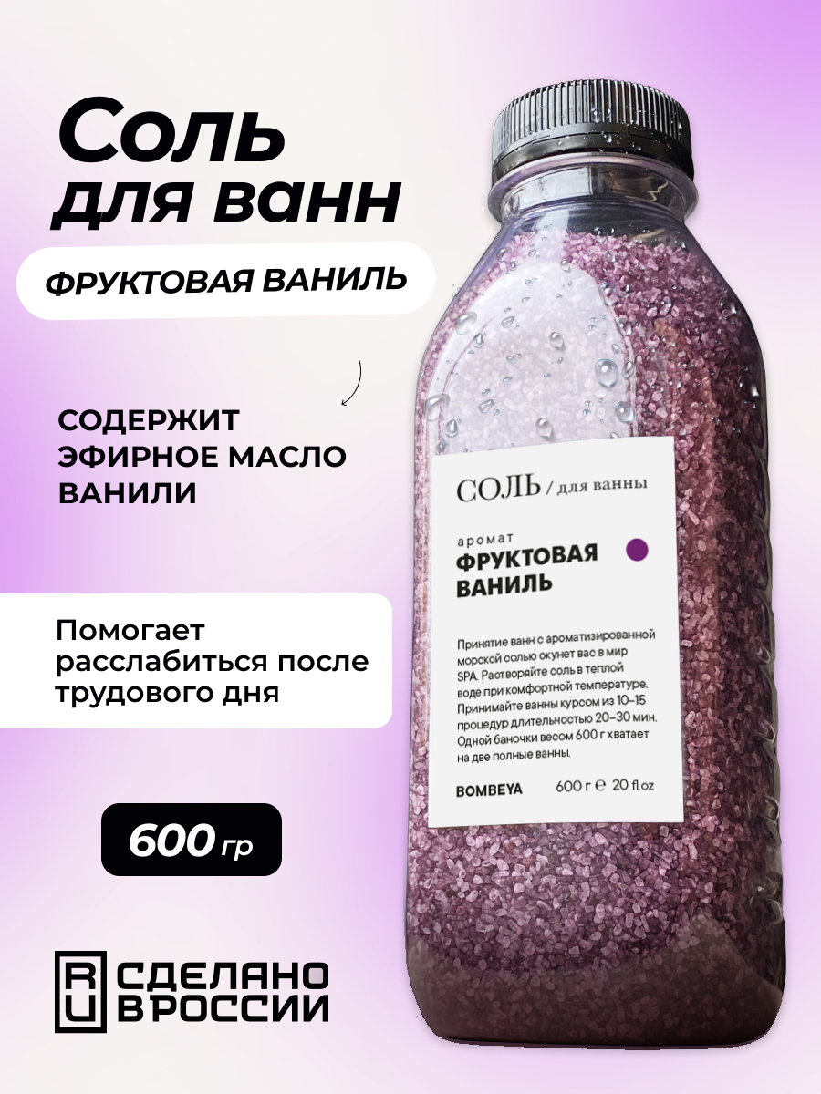 Соль для ванны магниевая с эфирным маслом и ароматом Фруктовой ванили, 600 г. информация:
