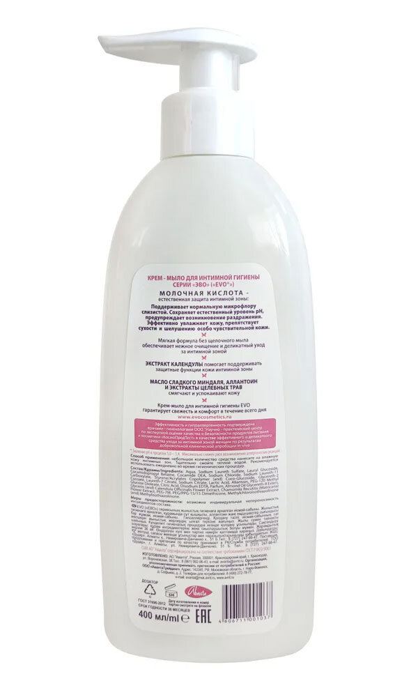 EVO Крем-мыло для интимной гигиены 400 мл х 1 шт информация: