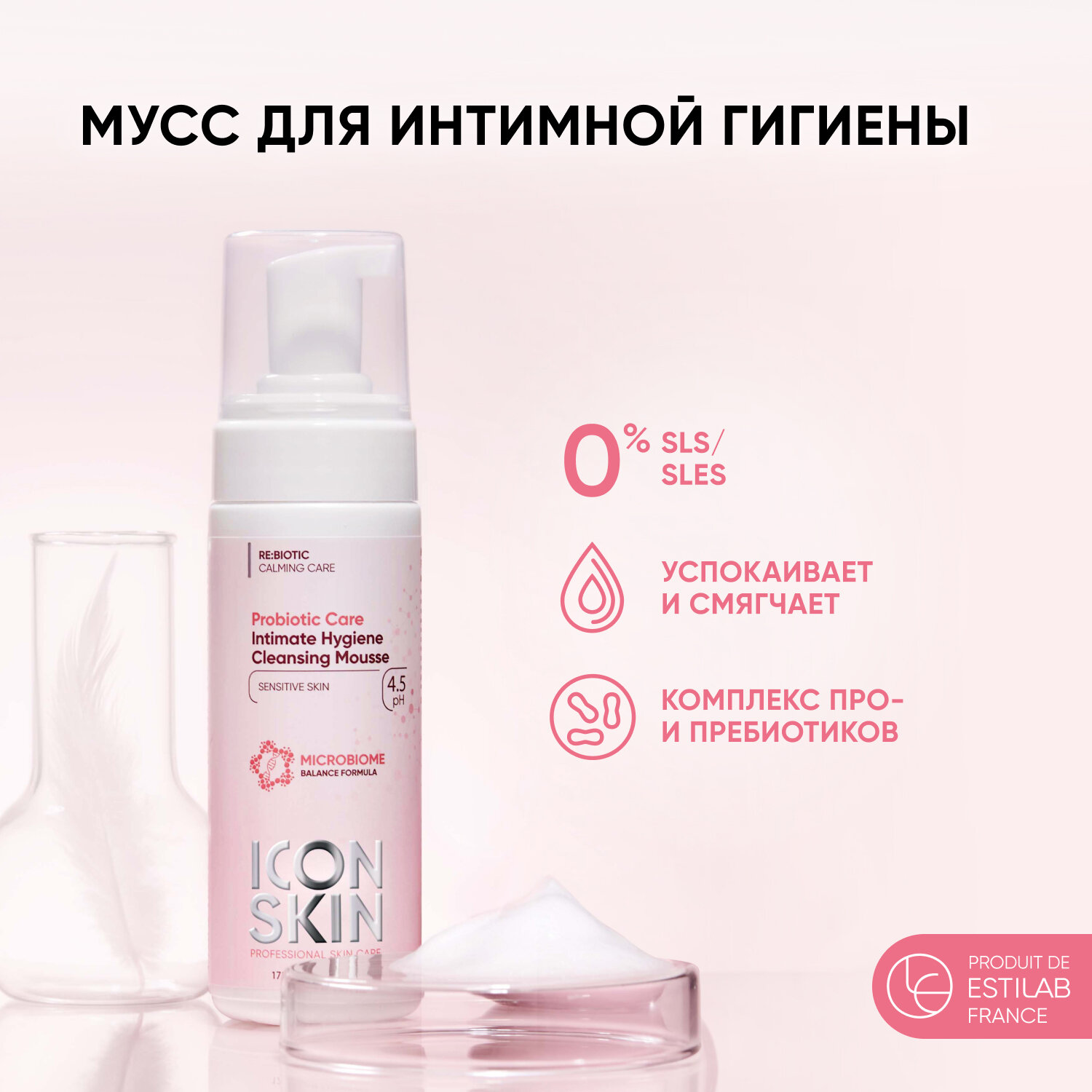 ICON SKIN / Мусс для интимной гигиены Probiotic Care с пребиотиком и пробиотиком для чувствительной кожи, 175 мл информация: