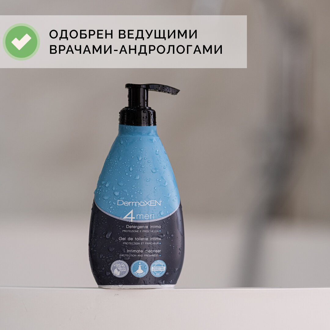 10 цен на Гель для интимной гигиены мужчин DermoXEN 4 men антибактериальный и противогрибковый, от неприятного запаха (Италия), 125 ml, pH 4.8