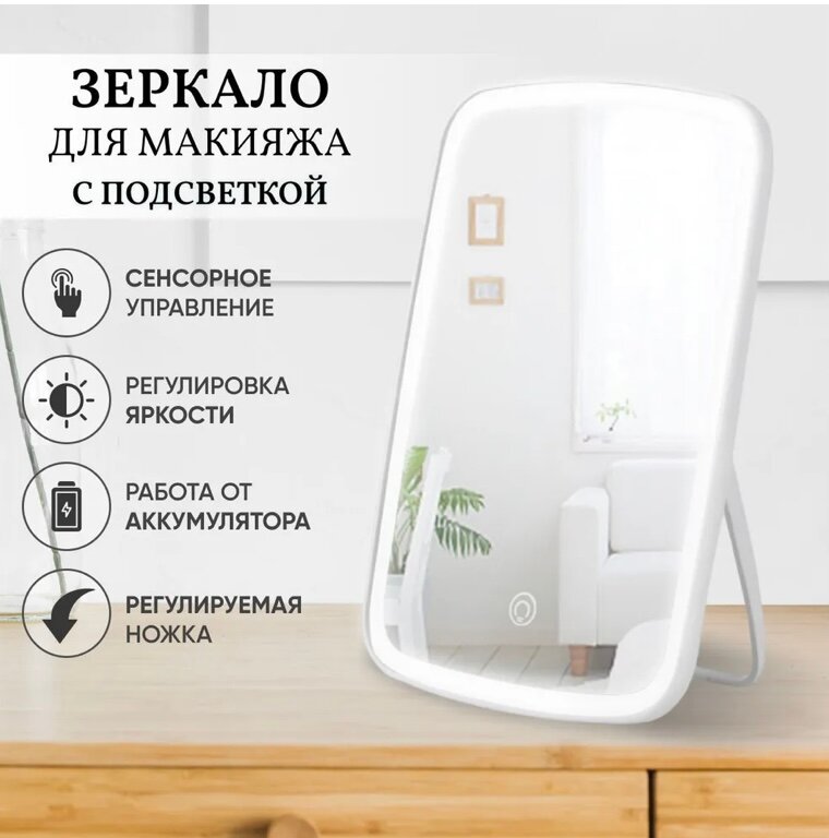 Настольное зеркало для макияжа с подсветкой белое информация: