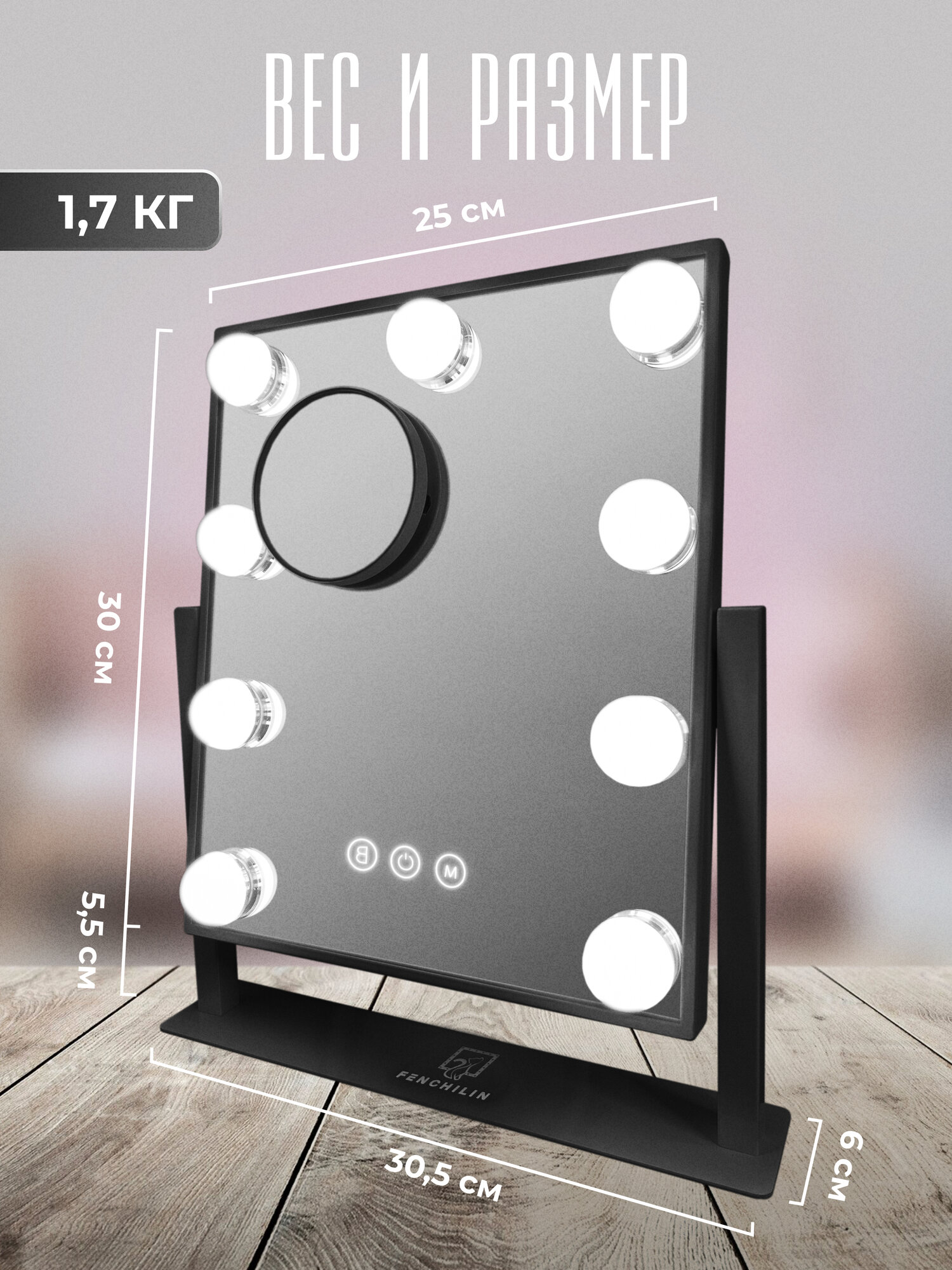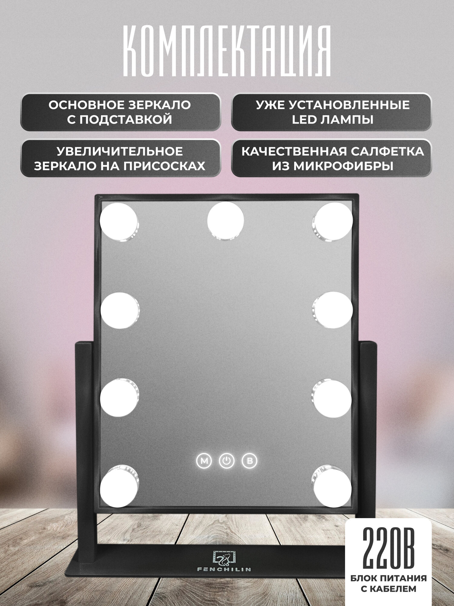 10 цен на Профессиональное зеркало c подсветкой для макияжа 30х25 см настольное , DC117-7 серия HOLLYWOOD от FENCHILIN, черное