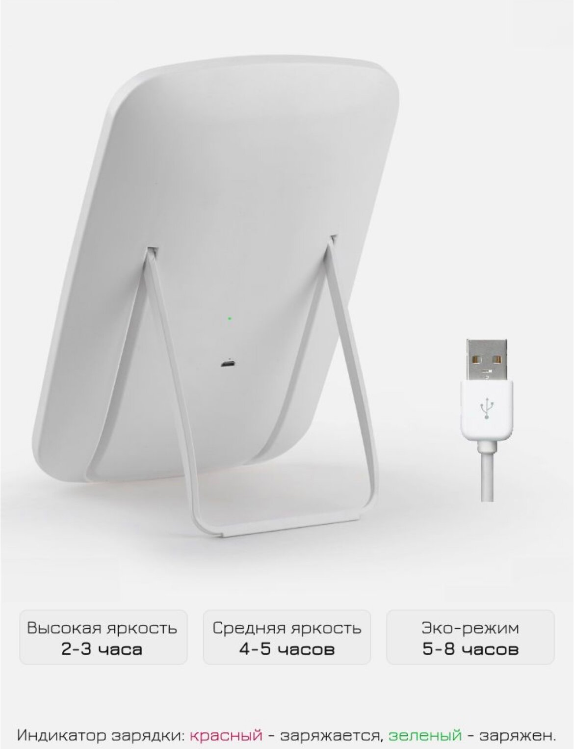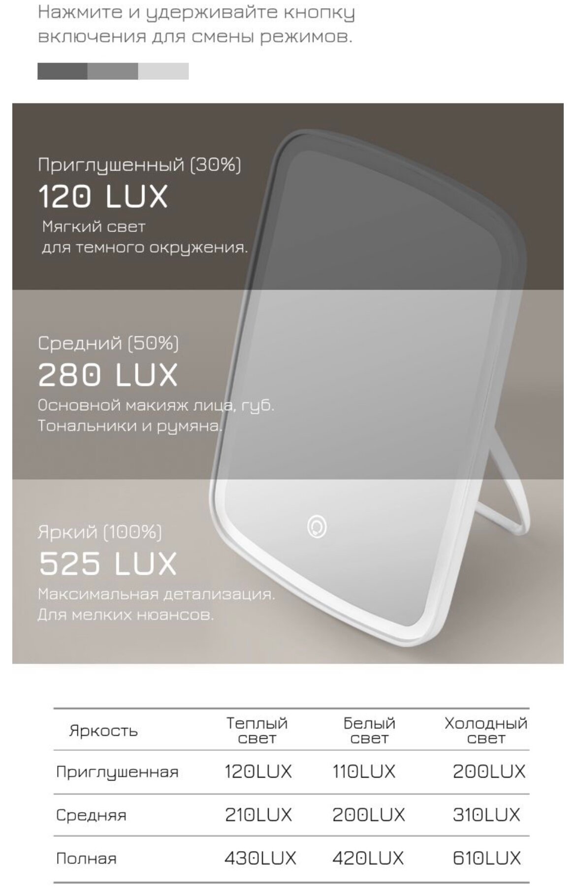 Зеркало косметическое с подсветкой 3 режима, LED белое информация: