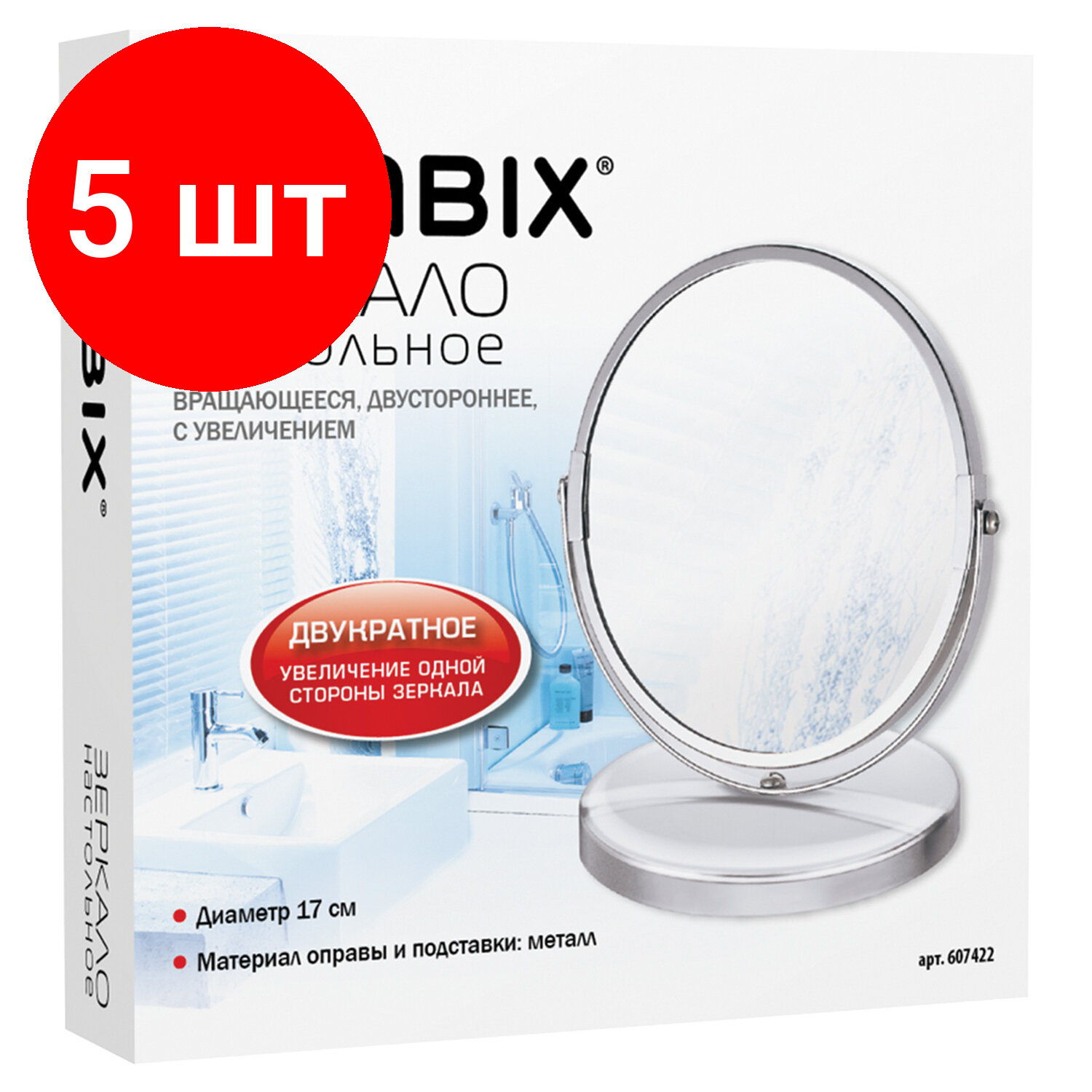 10 цен на Комплект 5 шт, Зеркало настольное BRABIX, круглое, диаметр 17 см, двустороннее, с увеличением, металлическая рамка, 607422