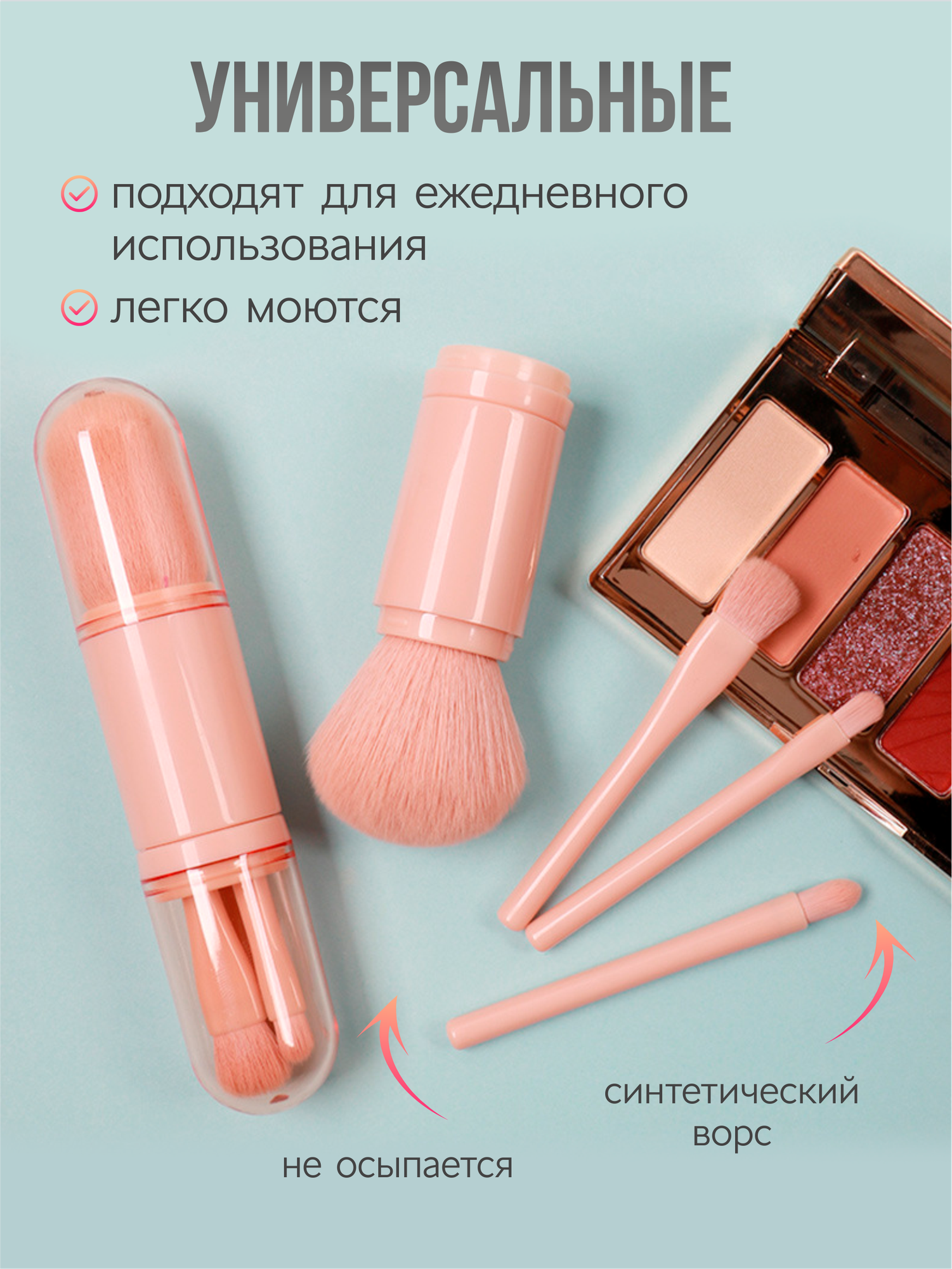 Кисти для макияжа, дорожный мини набор в футляре тубусе, 4 шт. информация: