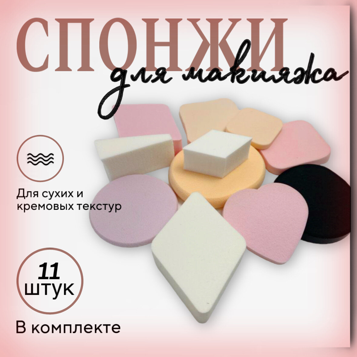 | Форма спонжа | круглый плоский / овальный плоский / прямоугольный плоский / ромбовидный |