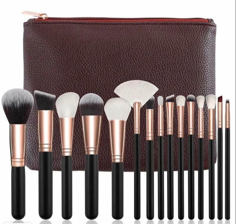 Отзывы на Набор косметических кистей для макияжа с косметичкой, 15 штук (коричневая)