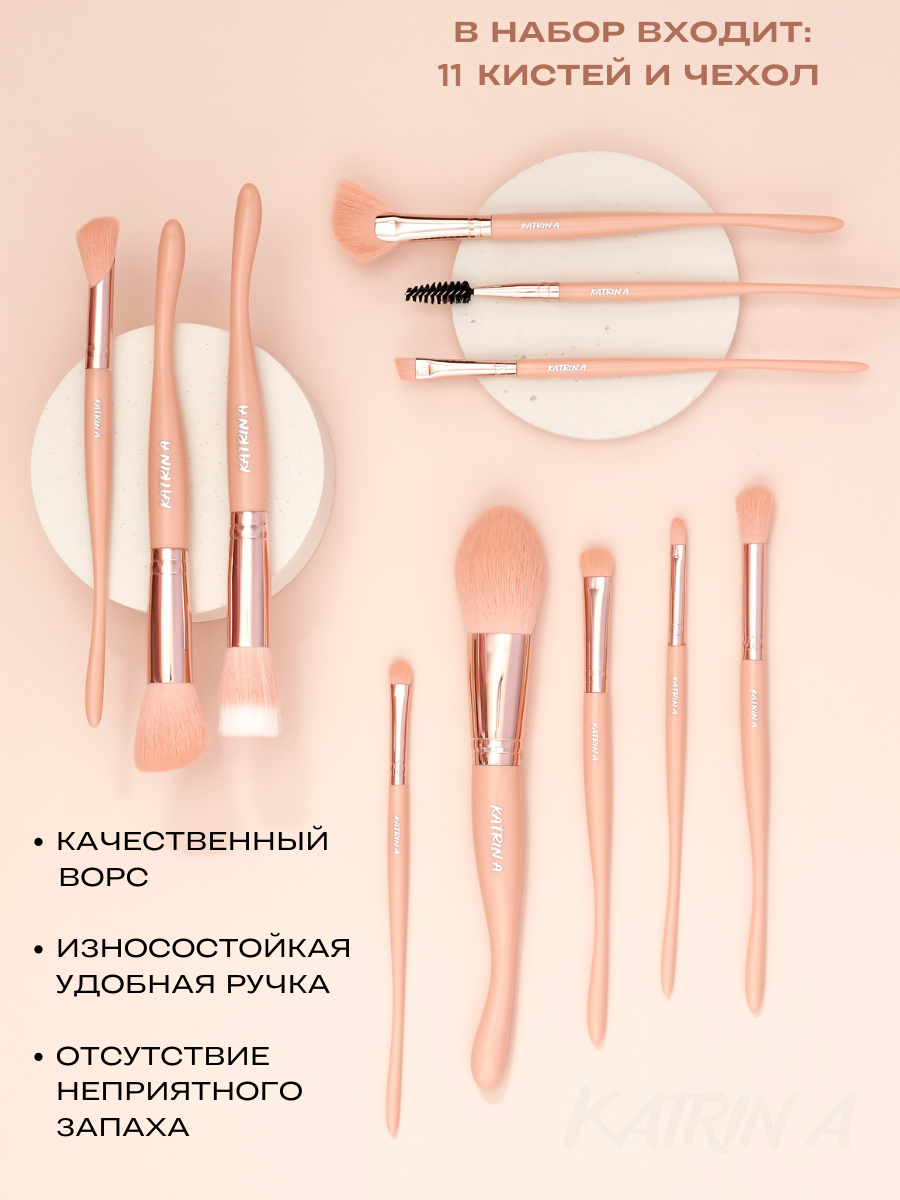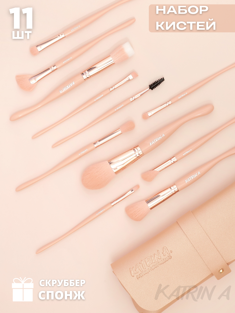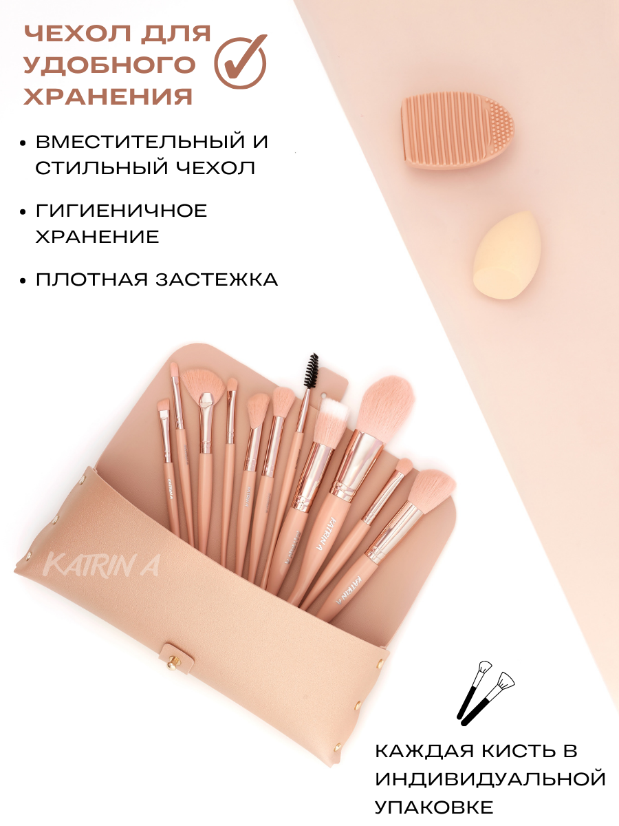10 цен на Кисти для макияжа / Набор кистей для лица бежевый в чехле