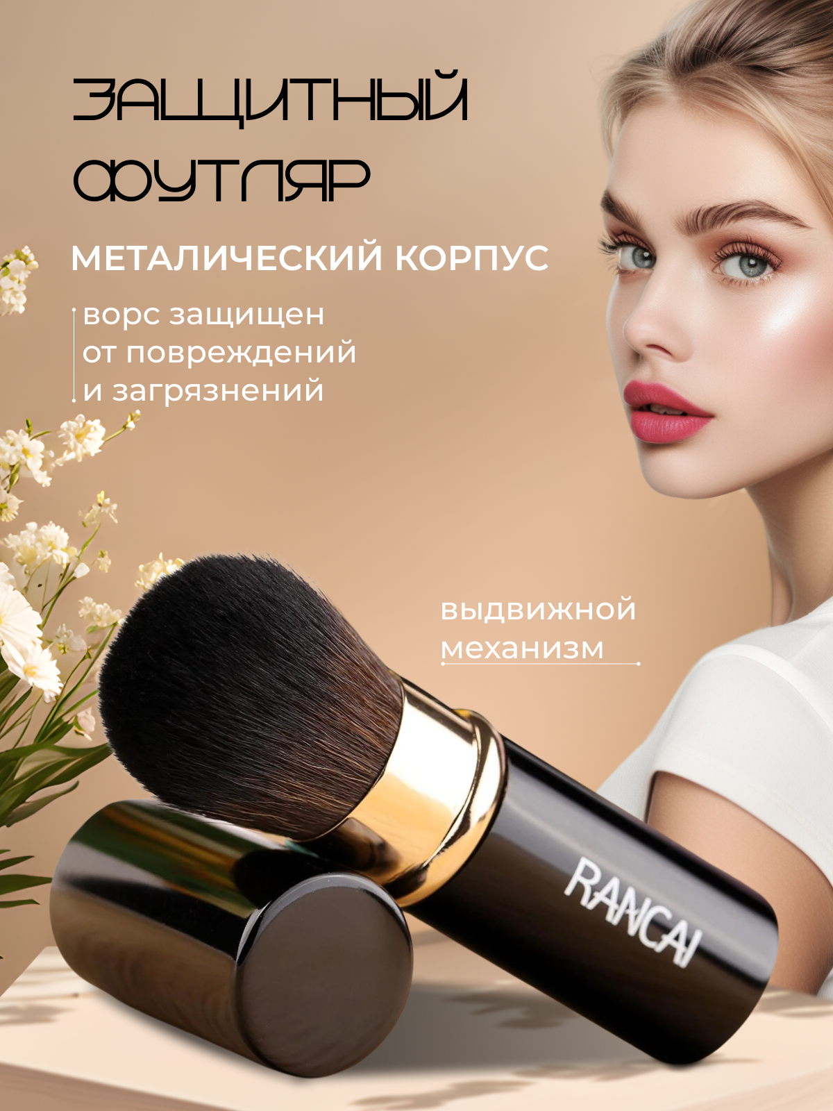 Компактная выдвижная кисть, RANCAI маленькая косметическая кисть 1 шт., для пудры и румян информация: