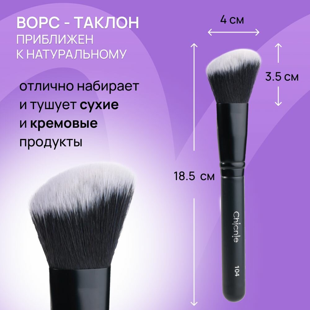 Кисть №104 скошенная для румян, контуринга, скульптора и бронзера / CHICNIE Angled Blush Brush №104 информация: