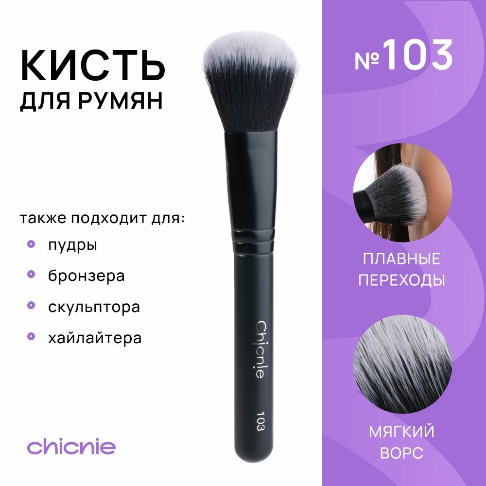 Кисть №103 для румян, пудры, бронзера, скульптора, хайлайтера / CHICNIE Blush Brush №103 информация: