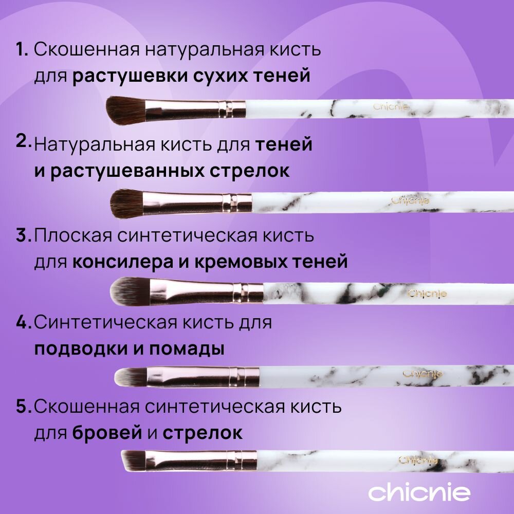 Набор кистей для макияжа, 5шт в тубусе / Chicnie Kitten Eye Brush Set / для теней, бровей и стрелок информация: