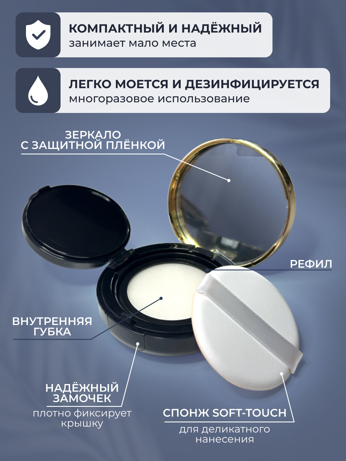 "Футляр-кушон Hottie" - пустой футляр для кушонов с удобным спонжем чёрный/золото информация: