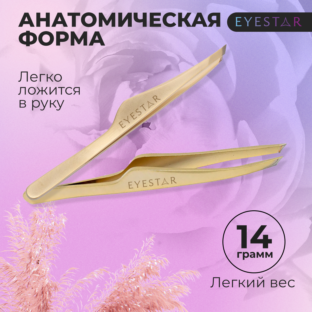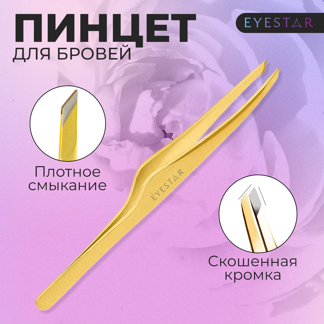 Отзывы на Профессиональный пинцет для бровей скошенный золотой, изогнутые щипчики для коррекции бровей и ресниц, острая заточка