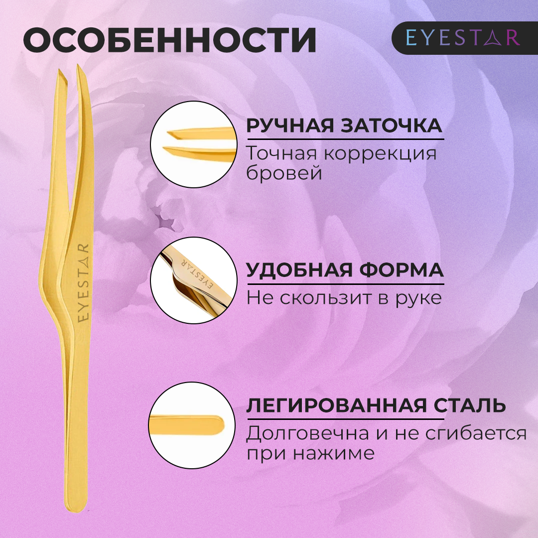 Профессиональный пинцет для бровей скошенный золотой, изогнутые щипчики для коррекции бровей и ресниц, острая заточка информация: