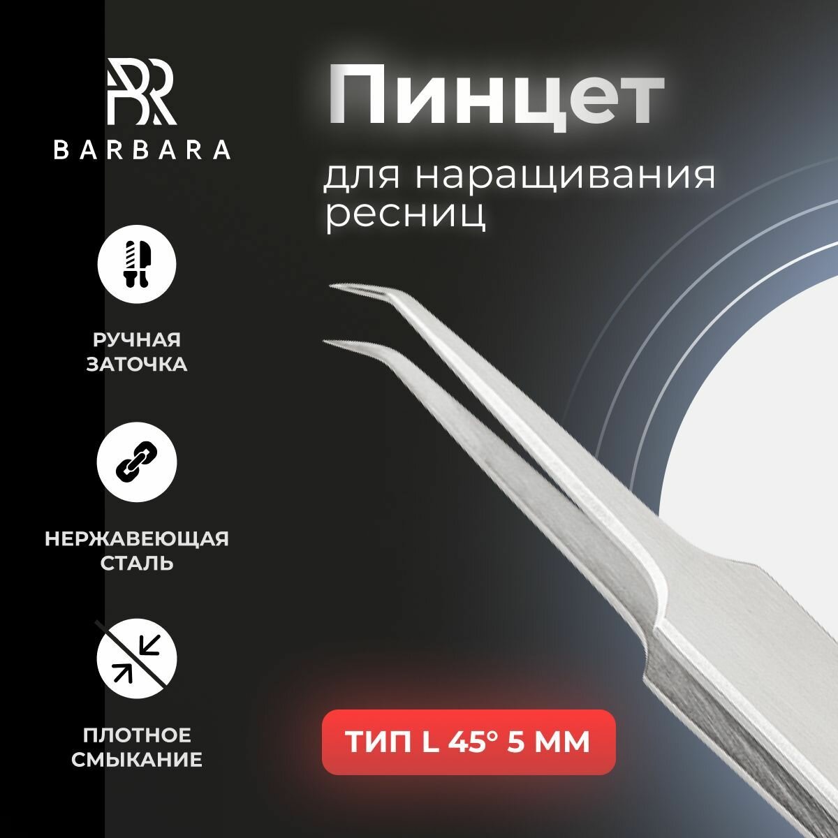 Пинцет для наращивания ресниц тип L (45 градусов, 5 мм) информация:
