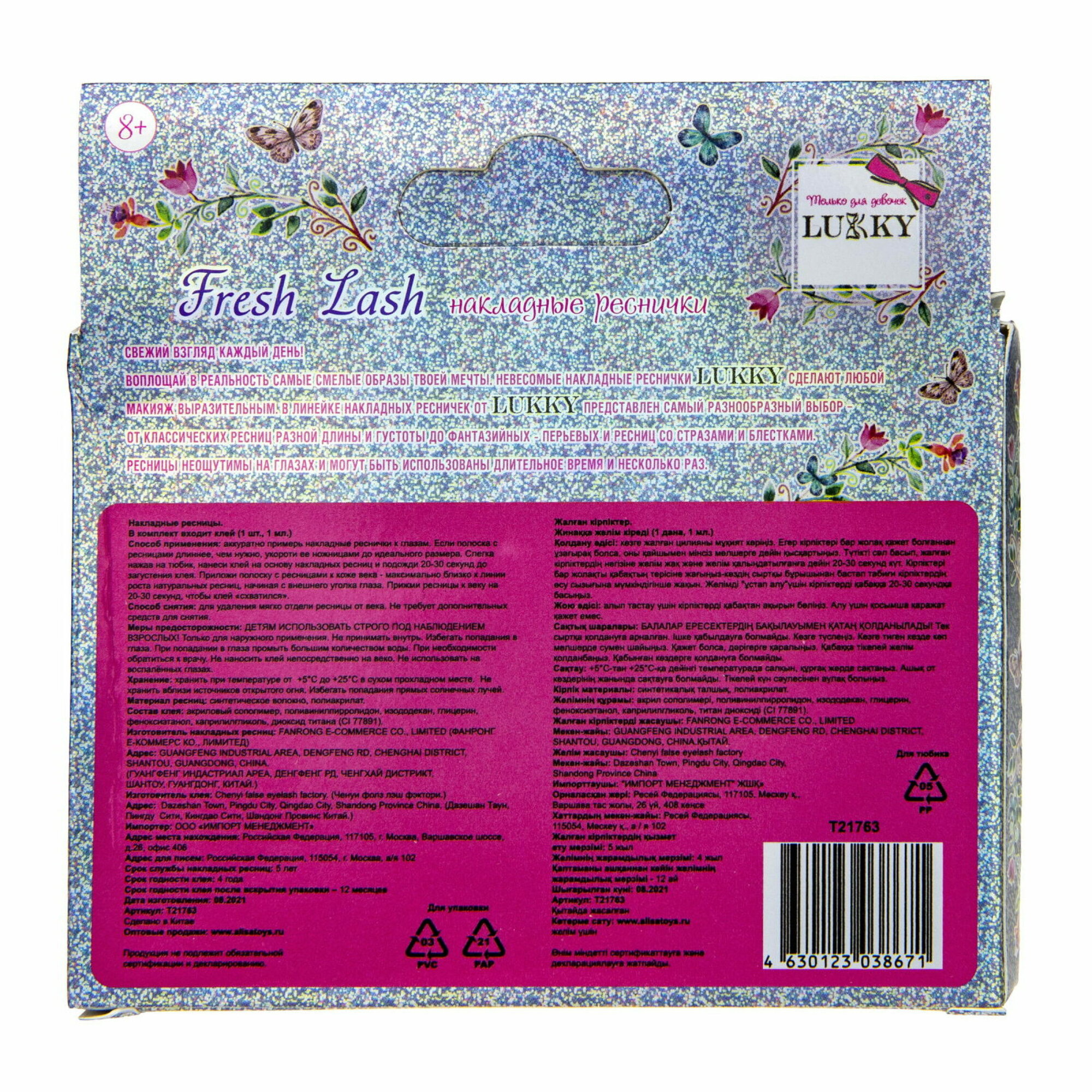 Реснички накладные LUKKY Fresh Lash с блестками «Дождик», клей в комплекте, кор.