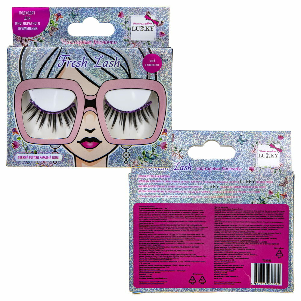 10 цен на Накладные ресницы Lukky Fresh lash, с блестящей подводкой "фиолетовый", клей в комплекте Т21753